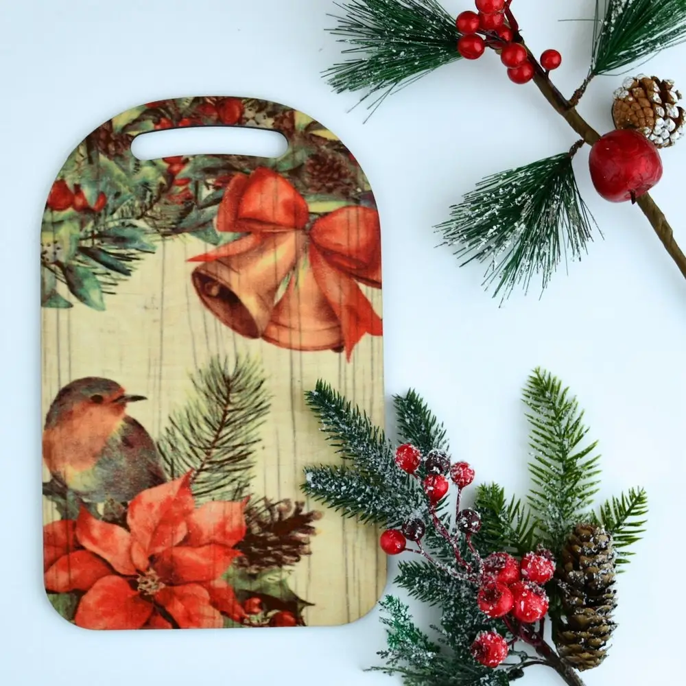 Декорированная, с одной стороны, доска может стать прекрасным подарком и достойным украшением интерьера кухни, столовой, гостиной.
