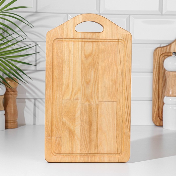 Деревянная разделочная доска — это классика, актуальная во все времена. Она не боится воды и имеет длительный срок службы. Подходит для мяса и овощей: продукты на ней не скользят, что значительно облегчает нарезку и обеспечивает безопасность повару. Также изделие почти не тупит ножи.