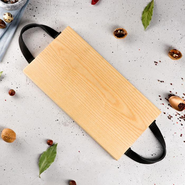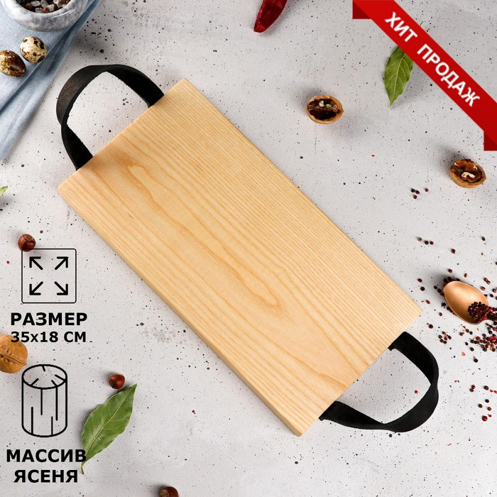 Доска разделочная "Поднос", кожаные ручки, массив ясеня, 35х18 см
