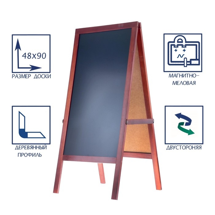 Доска-штендер двустороняя 48х90 см, магнитно-меловая, ЧЁРНАЯ, Calligrata, в деревянной рамке (тёмное дерево), на ножках