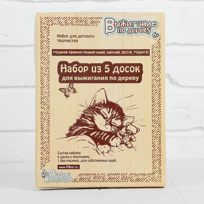 - Набор состоит из 5 досок, на них изображены: вишня, розы, котёнок и кролик. Одна доска без рисунка, для реализации ваших идей.