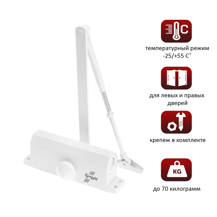 Доводчик дверной ТУНДРА D80WW, от 45-70 кг, белый