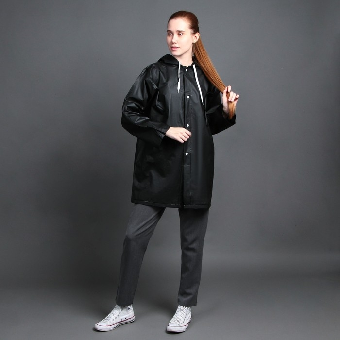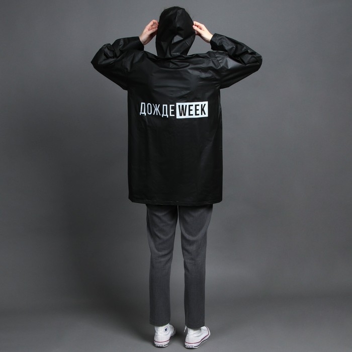 Дождевик взрослый укороченный ДождеWEEK, на кнопках, цвет чёрный, размер 42-48
