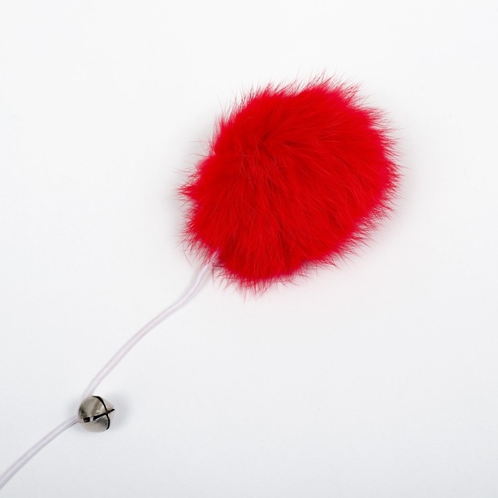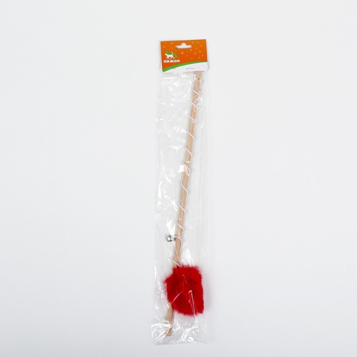 Дразнилка "Пушок" на деревянной палочке, с бубенчиком, 36 см, красная
