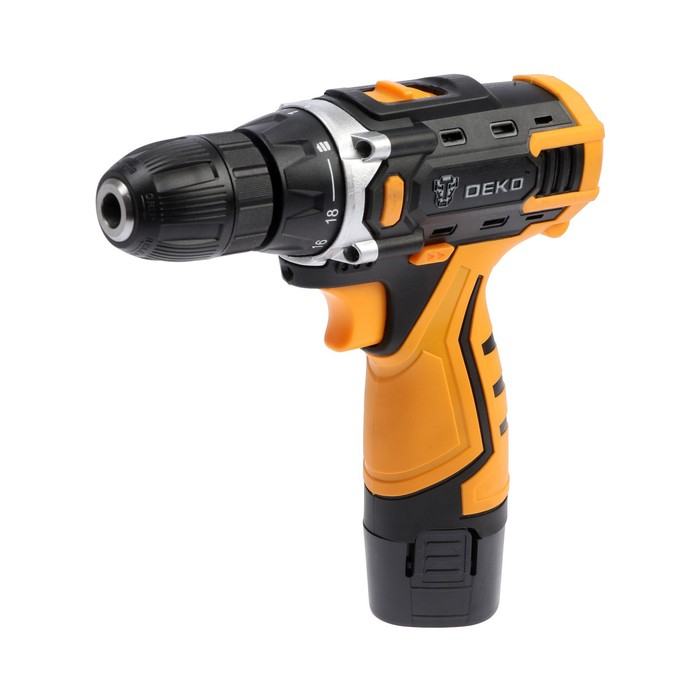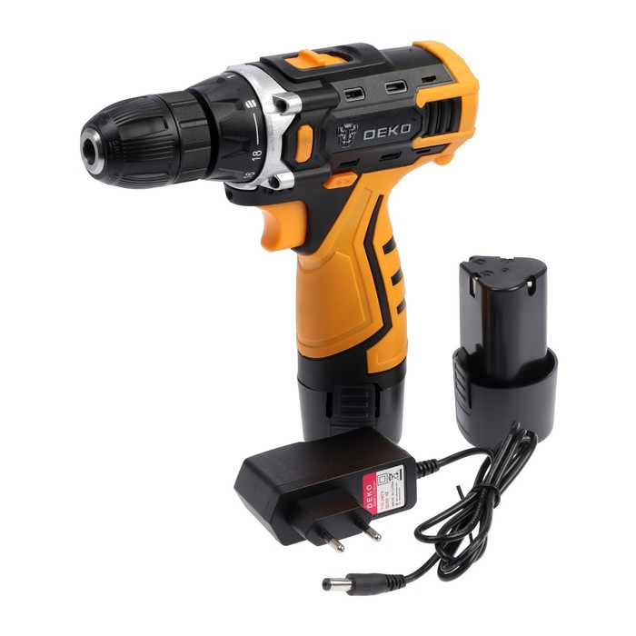 Дрель-шуруповерт DEKO DKCD12FU-Li и набор инструментов DEKO, 12 В, 2 Li-lon, 63 предмета