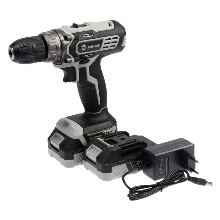 Дрель-шуруповерт DEKO DKCD20 Black Edition, 20 В, 2х2 Ач, Li-lon, кейс + набор 63 пр.