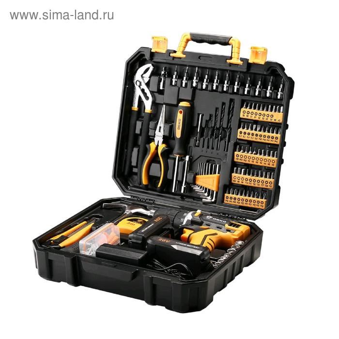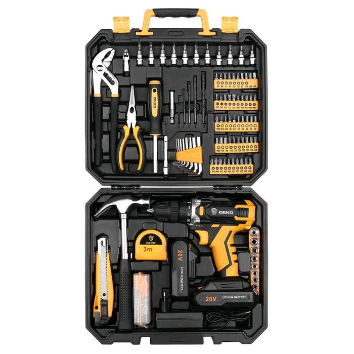 Дрель-шуруповерт DEKO DKCD20FU-Li и набор инструментов DEKO, 20 В, 2 Li-lon, 195 предметов