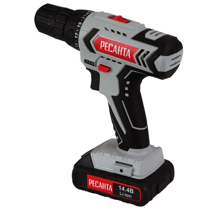 Дрель-шуруповерт "Ресанта" ДА-14-2ЛК 75/14/4, аккумуляторная, 14.4 В, 2 Аh, 2 АКБ, кейс