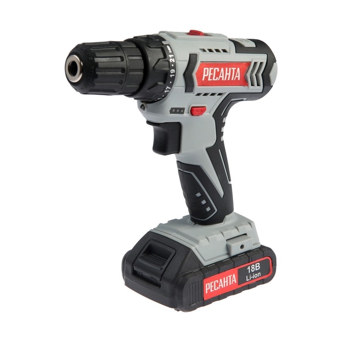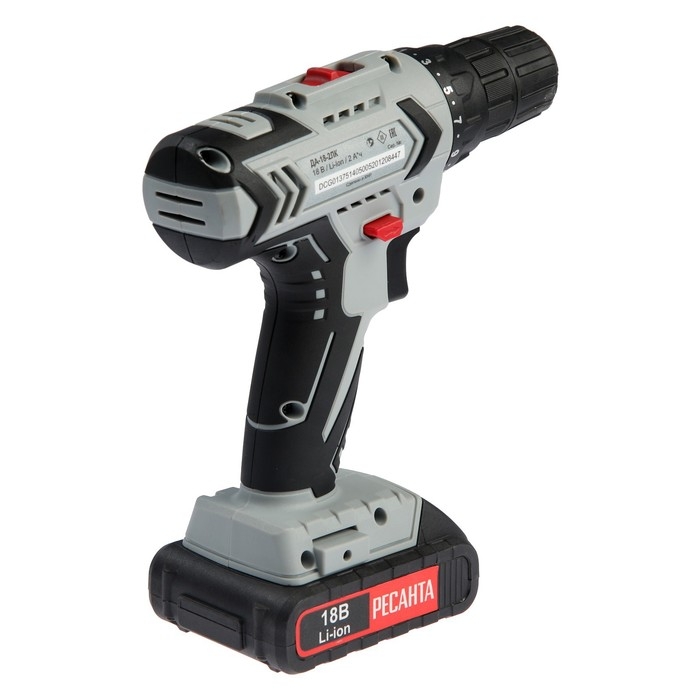 Дрель-шуруповерт "Ресанта" ДА-18-2ЛК, 18 Вт, 2х2 Ач, Li-Ion, 50 Нм, 400/1400 об/мин