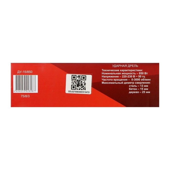 Дрель ударная "Ресанта" ДУ-15/850, 850 Вт, ЗВП 1.5-13 мм, 3000 об/мин, реверс