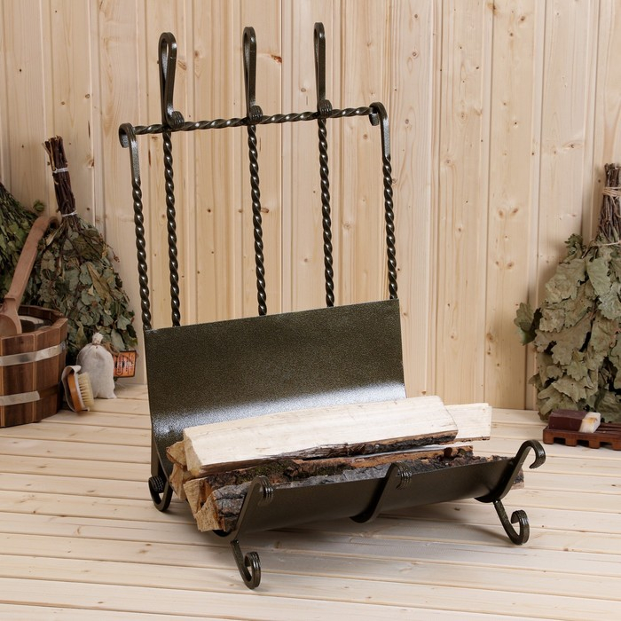 Дровница + 3 предмета (совок 64 см, щетка 58 см, кочерга 67 см) 46х42х63 см