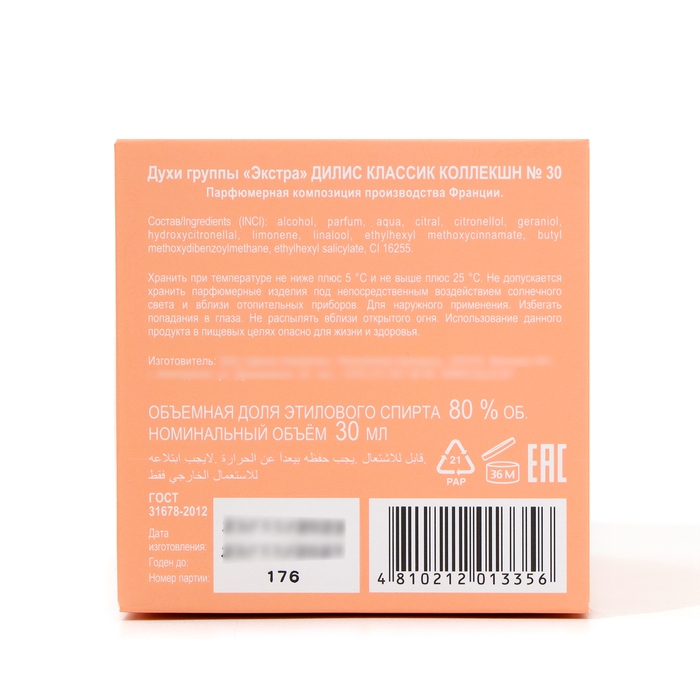 Аромат "Dilis Classic Collection № 30 - летний, пьянящий, но при этом мягкий и нежный. Он пробуждает пронзительными нотами красной смородины и киви, дополняется сочным и ярким коктейлем из жасмина, арбуза и розового цикламена.