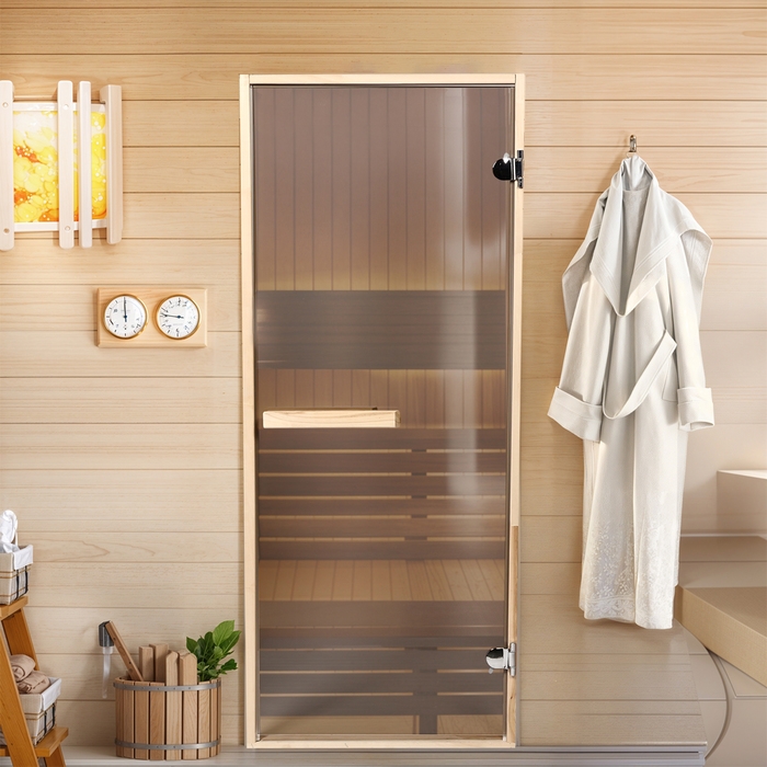 Дверь для бани и сауны стеклянная "Бронза", размер коробки 170х77, 6мм
