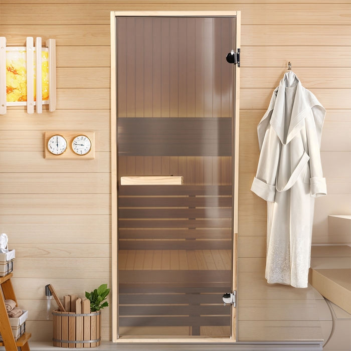 Дверь для бани и сауны стеклянная "Бронза", размер коробки 180х67, 6мм