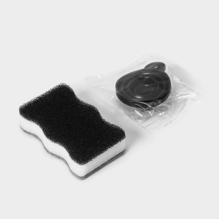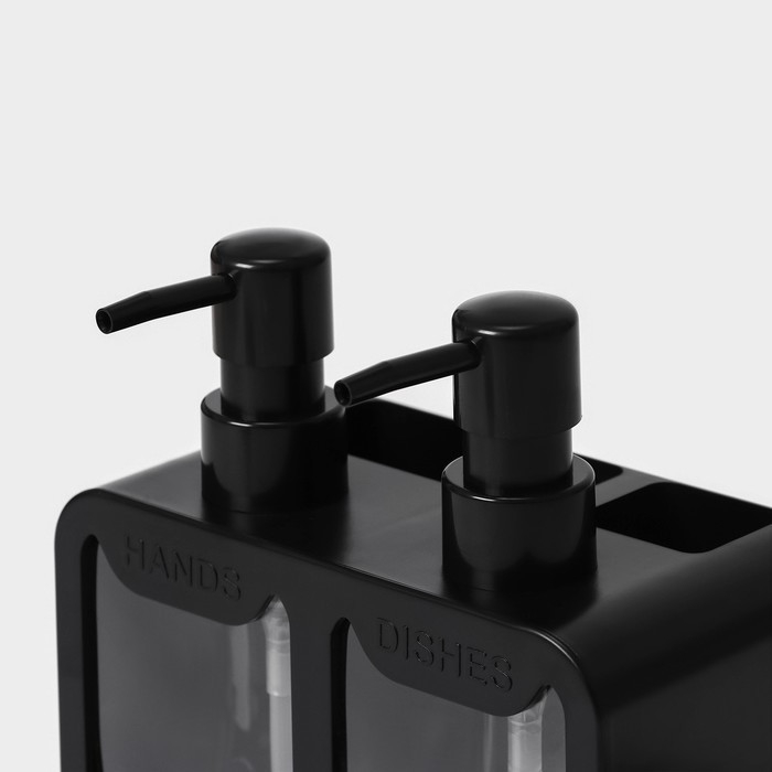 Двойной дозатор для мыла и моющего средства Raccoon, с губкой в комплекте, по 300 мл, цвет чёрный