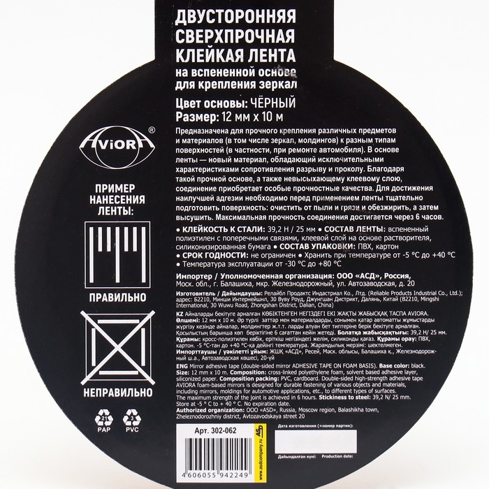 Двусторонняя клейкая лента для крепления зеркал предназначена для прочного крепления зеркал, молдингов, плинтусов, пластиковых бордюров, при монтаже и соединении металлических и пластиковых конструкций; при изготовлении рекламных материалов и создании декораций, а также других предметов к различным типам поверхностей (кафель, дерево, пластик, металл, бетон и т.д.).