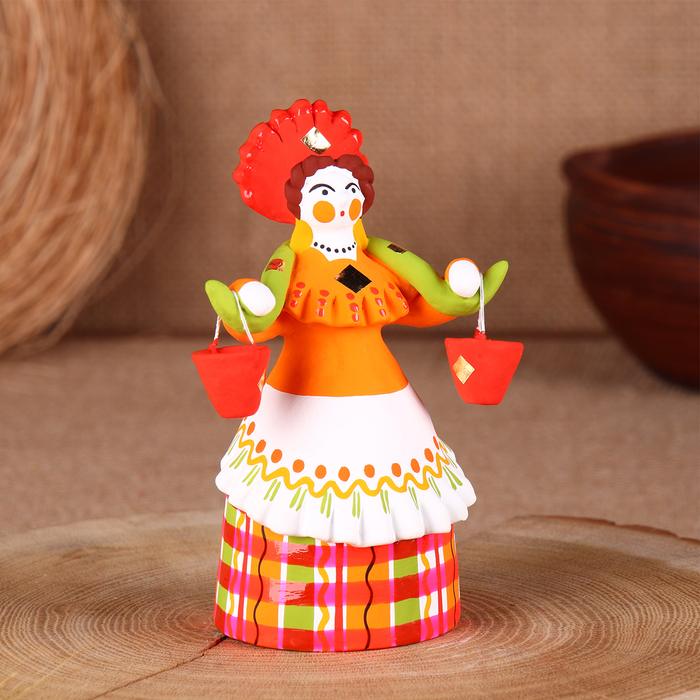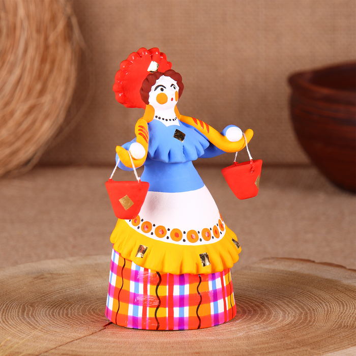 Дымковская игрушка "Барыня - водоноска", 14 см, микс