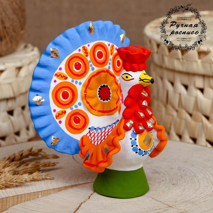 Дымковская игрушка "Индюк на ступке", 14 см, микс