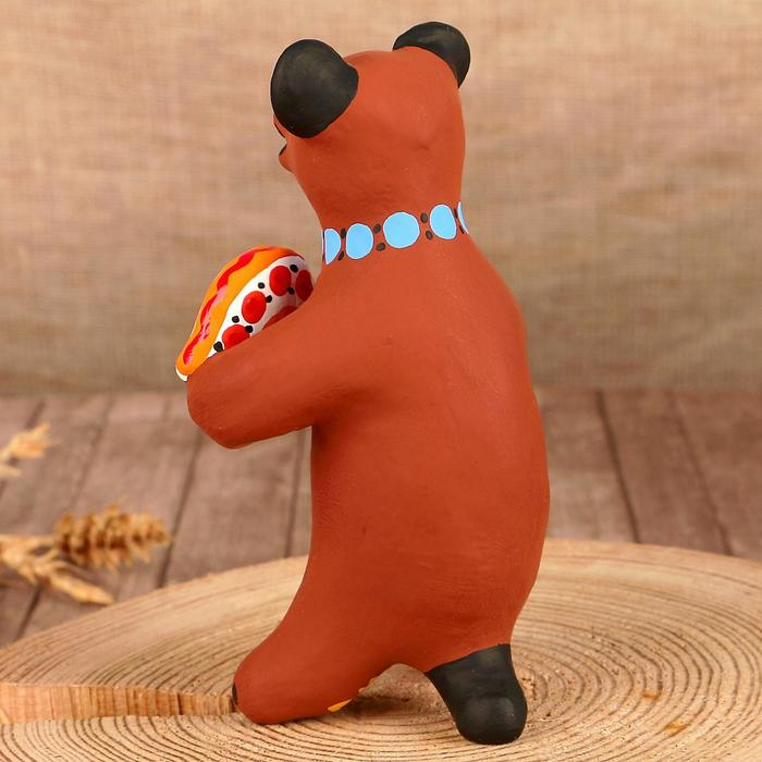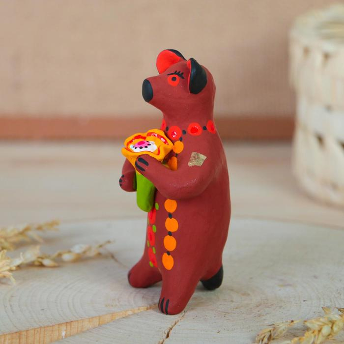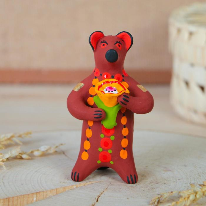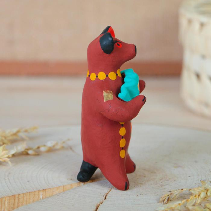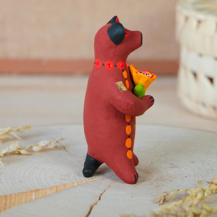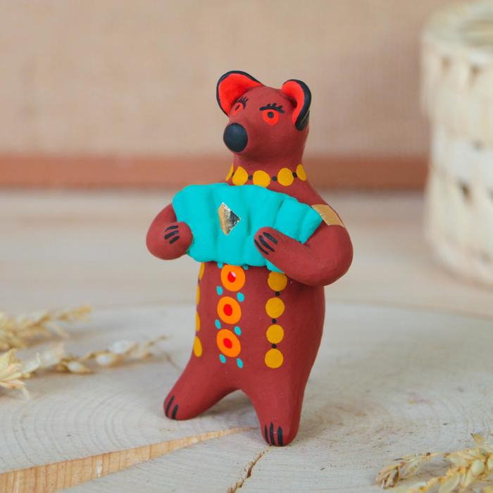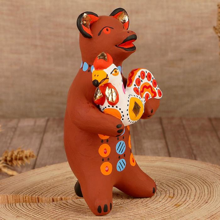 Дымковская игрушка "Медведь с цветком, с петухом, с гармонью", 11 см, микс
