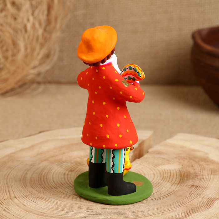Дымковская игрушка "Мужик стоячий с курочкой"