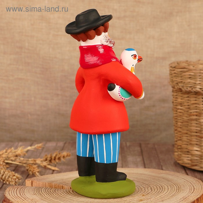 Дымковская игрушка "Старик с гусём"