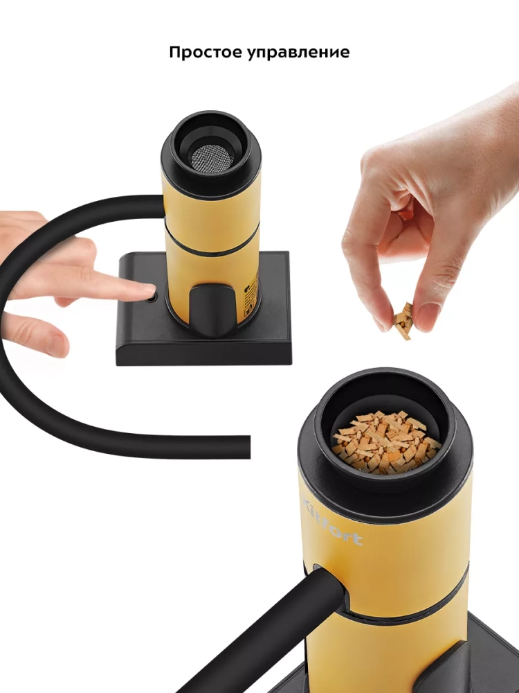 Дымогенератор для копчения Kitfort КТ-6355 предназначен для окуривания продуктов холодным дымом и получения вкуса и аромата копченых на костре продуктов. Благодаря компактной конструкции, малому весу, съемным элементам питания и общей простоте использования, вы можете взять дымогенератор с собой куда угодно и за считанные минуты придать любому блюду или напитку аромат и вкус «дымка».