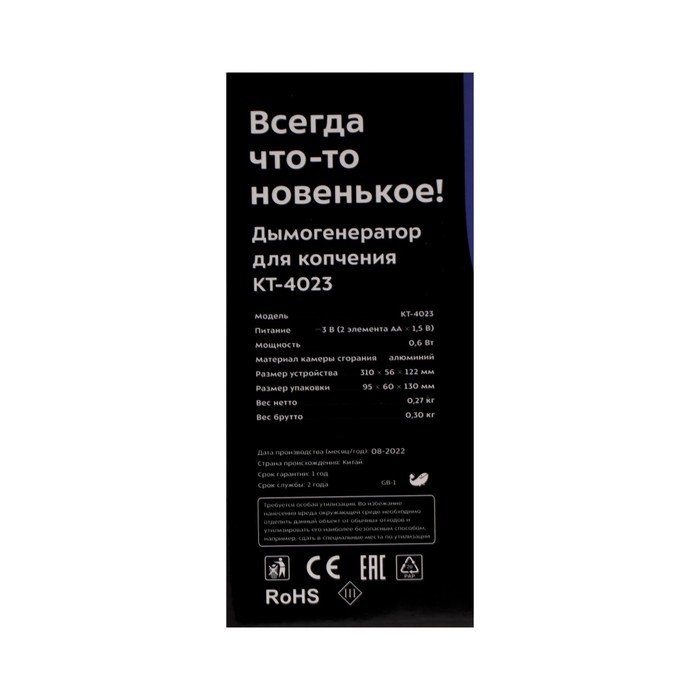 Дымогенератор для копчения Kitfort КТ-4023, 0.6 Вт, серебристо-чёрный