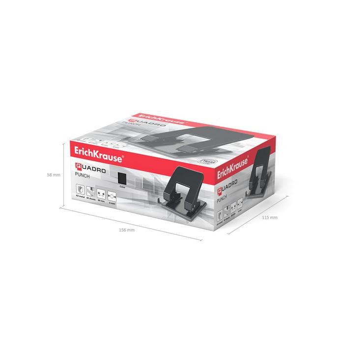 Дырокол до 40 листов ErichKrause Quadro, диаметр прокола 6 мм, расстояние между проколами 80 мм, чёрный