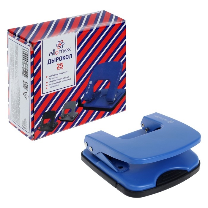 Дырокол "Attomex" (25 листов) металлический с линейкой, в картонной коробке, синий.
