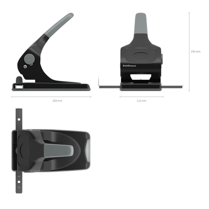 Дырокол мощный до 70 листов Erich Krause, с линейкой, серый, диаметр прокола 5.5мм, расстояние между проколами 80мм, чёрный