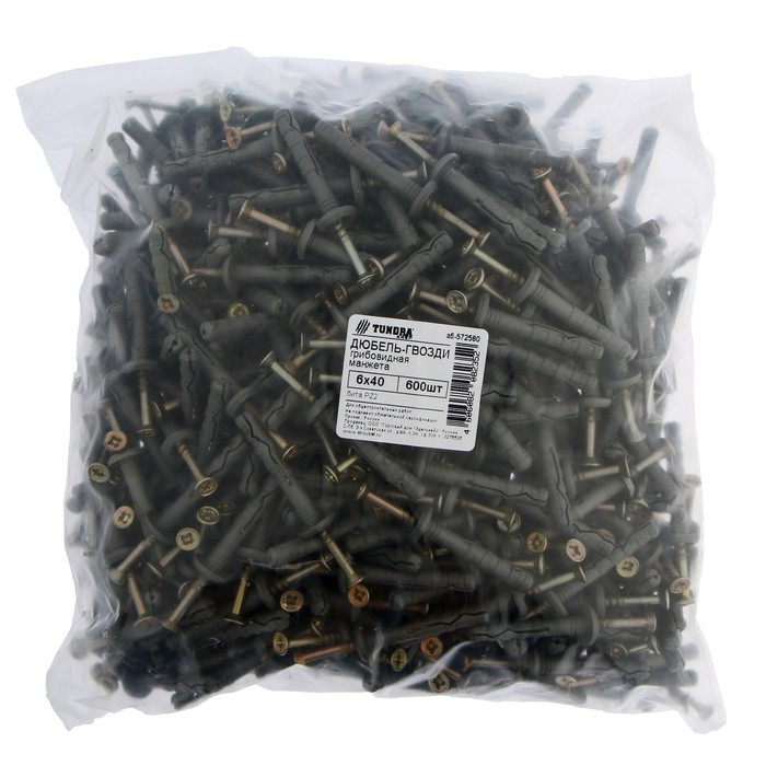Дюбель-гвоздь "ТУНДРА krep", распорный, пластиковый, грибовидная манжета, 6x40 мм, 600 шт