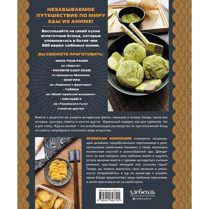 Научитесь воссоздавать вкусные блюда, упомянутые в более чем 500 ваших любимых аниме от «Наруто» до «Токийского гуля». 70 рецептов блюд ваших любимых персонажей отправят вас в увлекательное гастрономическое путешествие. Вместе с рецептом вы узнаете интересные факты, лежащие в основе блюда, такие как история, культура, советы и многое другое.