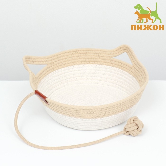 Лежанка для кошек и собак с бортиками из натуральных, гипоаллергенных материалов имеет плотную текстуру, сохраняет форму и имеет устойчивую основу.Лежанки имеет круглую форму и идеально подойдет для кошек, котов и собак мелких пород, а также грызунов. Плетеные бортики выдержат питомца весом до 5 кг.Лежанка изготовлена из натурального хлопка и рогоза. Модель представлена в двух вариантах расцветок.Сделанная с любовью и заботой лежанка ручной работы, специально для вашего любимца, не имеет химическую пропитку, что обеспечивает гипоаллергенность.Благодаря материалу и особому плетению, лежанка воздухопроницаемая, что позволяет не перегреваться животному даже в самый жаркий день.Кровать имеет высокие бортики и позволит стать местом не только для отдыха, но и для игр.А также ваш питомец сможет использовать ее как когтеточку.Лежанка оснащена плетеным мячиком на канате, который не заставит вашего питомца скучать, и разнообразит досуг, кошачьи ушки в изголовье лежака подойдут как для самостоятельных игр, так и для совместных, например игра в перетягивание. Веревочное плетение не даст мячику потеряться и всегда будет под «Лапкой», а форма игрушки и косички выполняют жевательную функцию. Игрушка поможет поддерживать гигиену полости рта питомца и поспособствует укреплению десен. Лежанку можно стирать в машинке на деликатном режиме, что сэкономит ваше время на уход за изделием.Лежанка идеально подойдёт для летнего жаркого сезона дома или на даче.