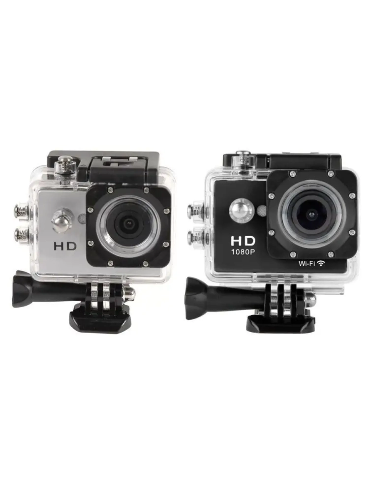 Экшн камера специально предназначена для съемки в экстремальных условиях и во время движения. Аналог GoPro. Данная камера отличается небольшими габаритами и массой, и рассчитана на съемки под водой, удары и тряску, имеет в комплекте водонепроницаемый бокс до 30 м и много разных креплений. Небольшая удобная камера для съемки событий в режиме онлайн. Камера сделана из легкого прочного пластика, имеет несколько режимов фото и видео съемки. Поддерживает большой объем внешней памяти до 32Гб. Аккумулятора хватит на 1 час непрерывной съемки, в том числе и под водой в герметичном боксе. В комплект входит большой набор дополнительных аксессуаров для крепления и установки камеры в любом удобном положении. Преимущества экшн камеры Full HD 1080p: Легкая и удобная, Водонепроницаемый корпус, Удобная зарядка, Для спортсменов и туристов.
