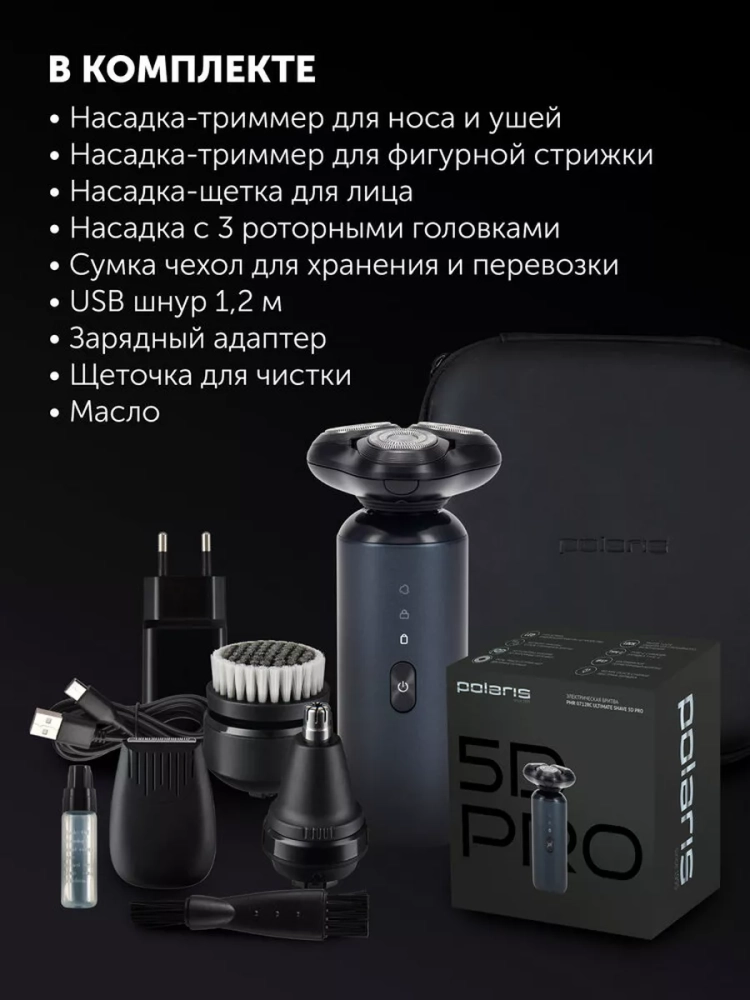 Электрическая бритва Polaris PMR 0712RC Ultimate Shave 5D PRO — надежная бытовая техника для мужчин, ценящих комфорт и функциональность в уходе за собой.