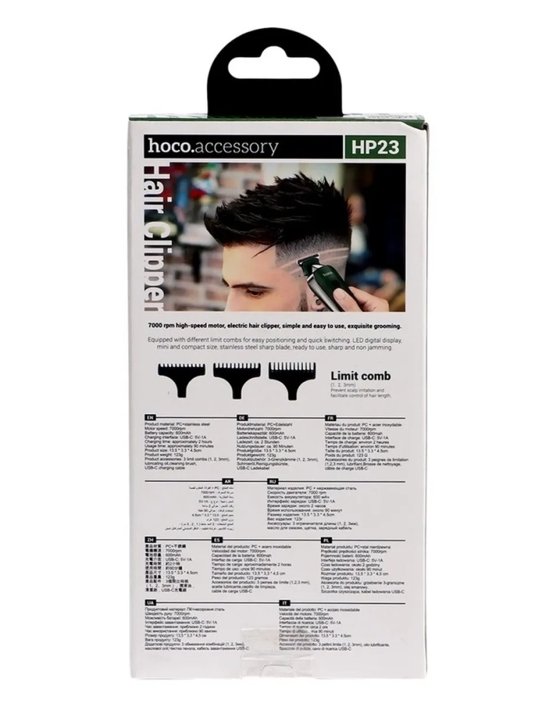 Электрическая машинка для стрижки бренда Hoco - это надежный помощник для стрижки в домашних условиях или в пути. Эта модель выполнена из высококачественной нержавеющей стали и пластика, обеспечивая долговечность и удобство в использовании. Размеры машинки составляют 13,5 * 3,3 * 4,5 см, ее вес - 123 г, что делает ее компактной и удобной для переноски. Машинка оснащена аккумулятором емкостью 600 мАч, обеспечивающим до 90 минут бесперебойной работы после полной зарядки, которая занимает всего 2 часа. Частота вращения двигателя составляет 7000 оборотов в минуту, что обеспечивает эффективное и быстрое стрижение. На машинке также имеется LED-дисплей, который позволяет отслеживать уровень заряда аккумулятора в реальном времени. В комплекте с машинкой поставляются 3 насадки (1/2 / 3 мм), смазочное масло, щетка и зарядное устройство для кабеля, что делает использование устройства еще более удобным и функциональным. Электрическая машинка Hoco идеально подходит для профессионального использования на высокой нагрузке или для домашнего использования. Ее многофункциональность позволяет не только стричь волосы, но и ухаживать за бородой и усами. Бесшумная работа, регулировка длины и удобство в использовании делают эту машинку отличным выбором как для начинающих, так и для опытных мастеров. Будь то подарок для мужчины, который ценит ухоженный внешний вид, или просто необходимый инструмент в вашем арсенале, электрическая машинка для стрижки Hoco станет незаменимым помощником в создании стильного образа. Она станет отличным подарком для любого мужчины, кто заботится о своем внешнем виде.