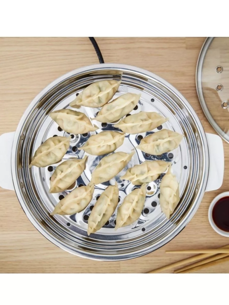 Индикатор уровня воды, 2 складываемые чаши объемом 6 л. Удобная пароварка поможет насладиться всеми преимуществами приготовления на пару и создать потрясающие блюда легко и быстро.
