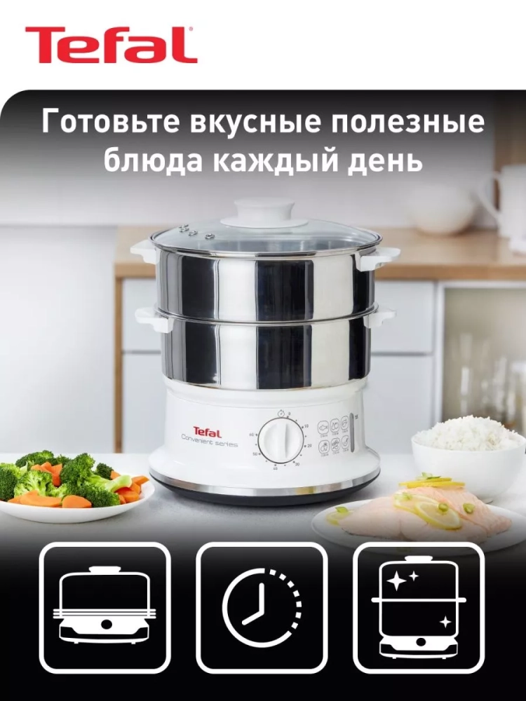 Электрическая пароварка Tefal Convenient Series VC145130. Современная пароварка поможет насладиться всеми преимуществами приготовления на пару и создать потрясающие блюда легко и быстро.