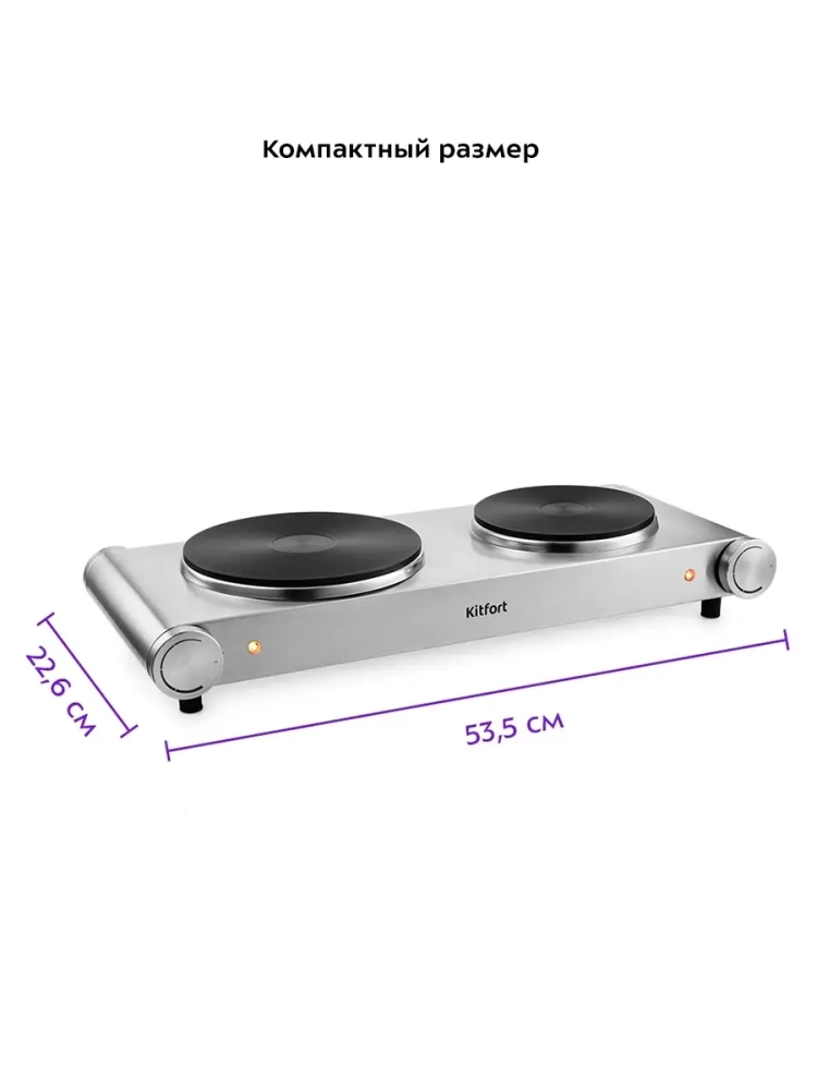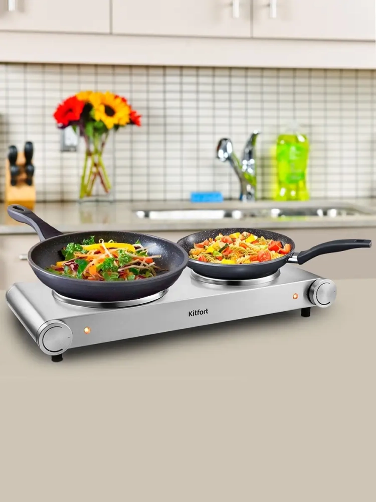 Электрическая плита Kitfort КТ-152 поможет приготовить блюда самой разнообразной кухни. Стильный дизайн в духе минимализма и корпус из нержавеющей стали впишутся в любой интерьер. Плита КТ-152 компактная и простая в управлении, поэтому с приготовлением на ней справится любой. На плите можно готовить в любом месте, где есть электричество, это делает плиту универсальной и простой для использования. Компактные размеры плиты позволят использовать ее на любой кухне, даже самой маленькой. Плавная регулировка температуры позволяет подстроить нагрев под любые блюда. Легко и быстро настроив температуру, вы можете жарить, тушить или варить. Прямой нагрев позволяет использовать любую металлическую посуду, даже алюминиевые сковороды. В плите установлен специальный термопредохранитель, который в случае перегрева плиты разорвет электрическую цепь и отключит нагрев. Корпус и конфорки плиты выполнены из металла, благодаря этому плиту легко очистить от загрязнений.