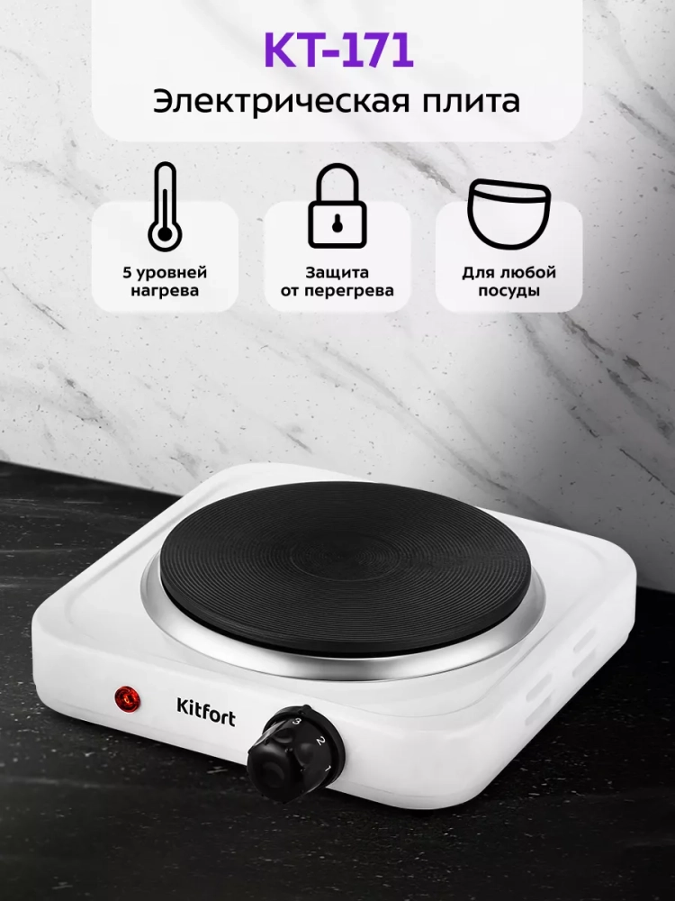 Электрическая плита Kitfort КТ-171 поможет приготовить блюда самой разнообразной кухни. Плита КТ-171 компактная и простая в управлении, поэтому с приготовлением на ней справится любой. На плите можно готовить в любом месте, где есть электричество, это делает плиту универсальной и простой в использовании. Компактные размеры плиты позволят использовать ее на любой кухне, даже самой маленькой.