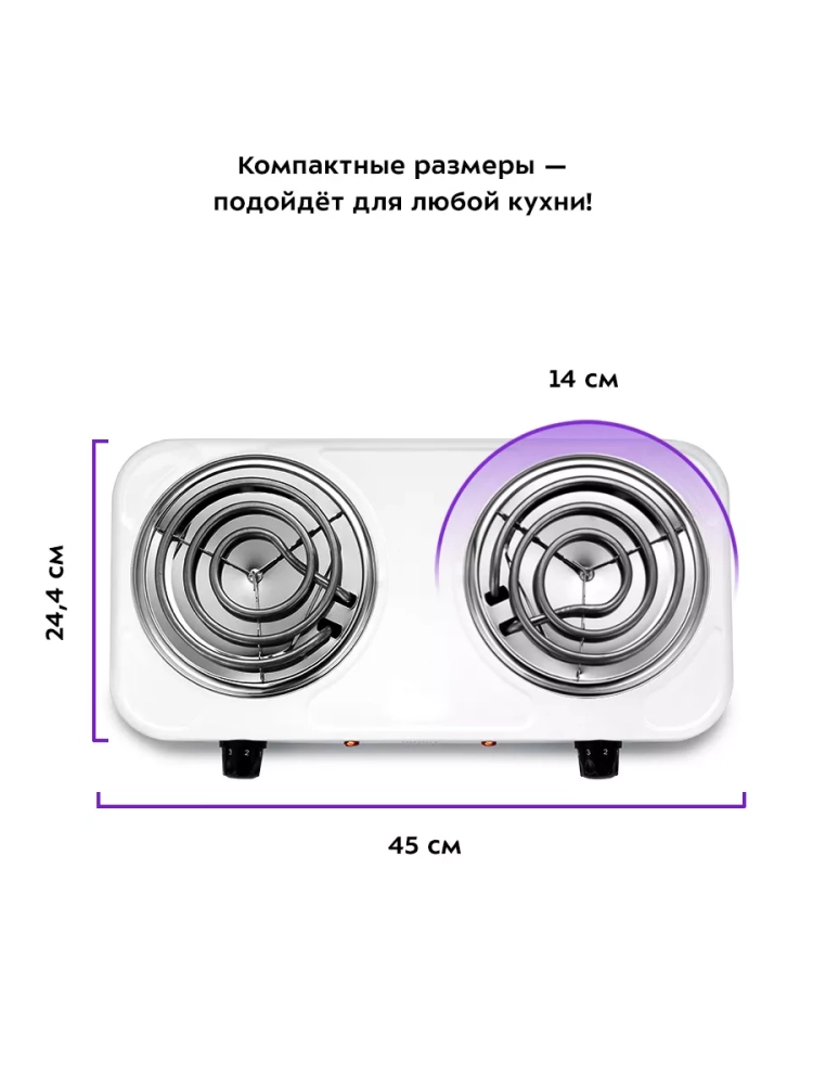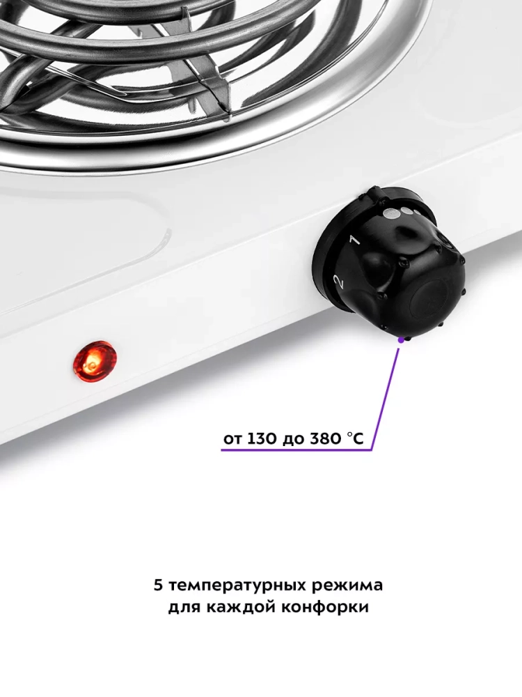 Корпус плиты выполнены из металла, благодаря этому плиту легко очистить от загрязнений. Конфорки представляют из себя 2 ТЭНа.
