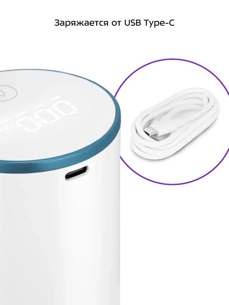 Складная конструкция позволяет держать отверстие выхода воды в чистоте, а также экономит место при хранении и транспортировке. Устройство имеет защиту от случайного включения: невозможно включить помпу, если носик прижат к корпусу.