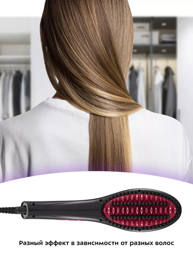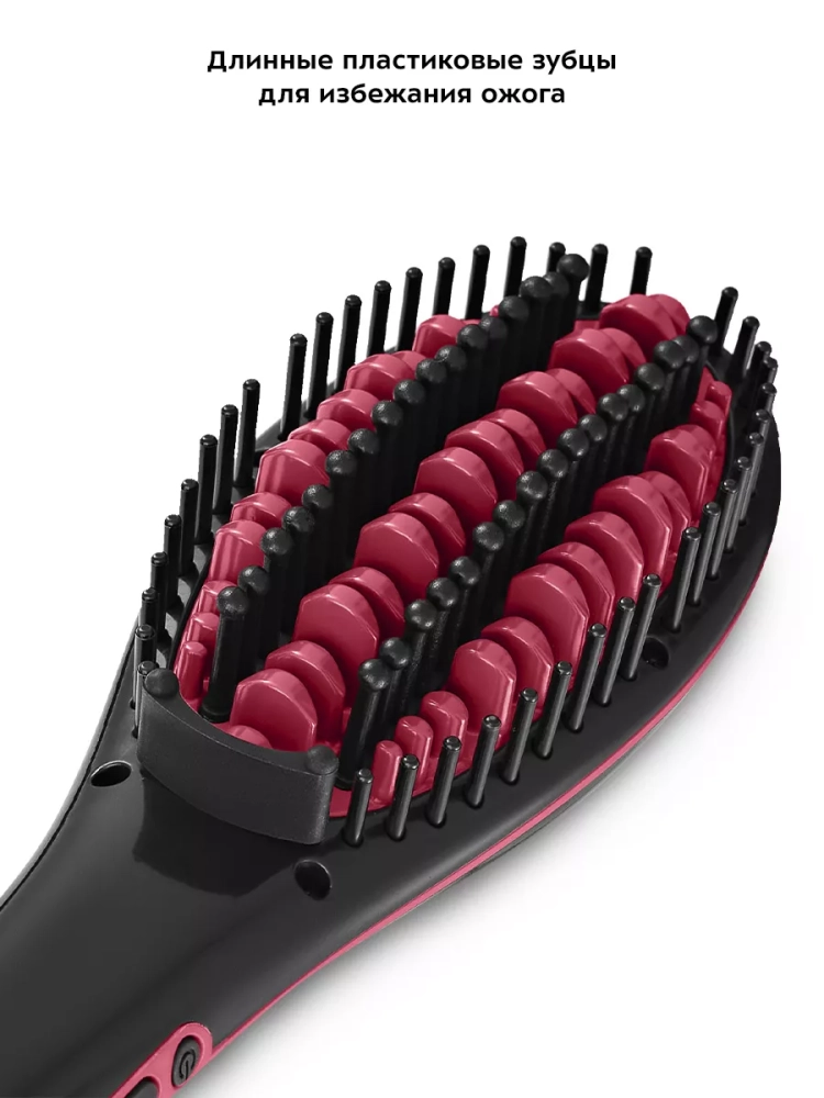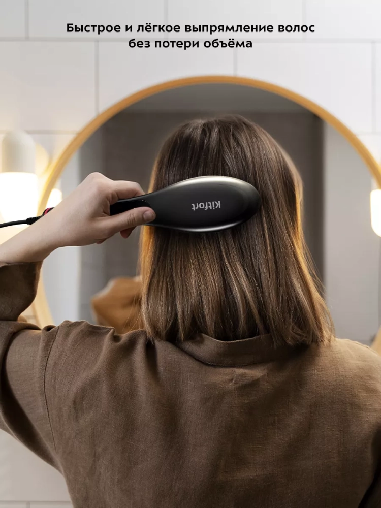 Электрическая расческа-выпрямитель Kitfort КТ-3263 предназначена для быстрого и легкого выпрямления волос без потери объема. Металлические зубцы расчески-выпрямителя нагреваются, благодаря чему выпрямляют волосы, делая их гладкими и блестящими за счет приглаживания кутикулы, когда вы просто причесываетесь электрической расческой-выпрямителем. По внешнему краю и между металлическими зубцами есть более длинные пластиковые зубцы, которые нагреваются меньше, чтобы вы не обожглись. Однако при установке высокой температуры пластиковые зубцы нагреваются достаточно сильно, поэтому соблюдайте особую осторожность при использовании и прибора.