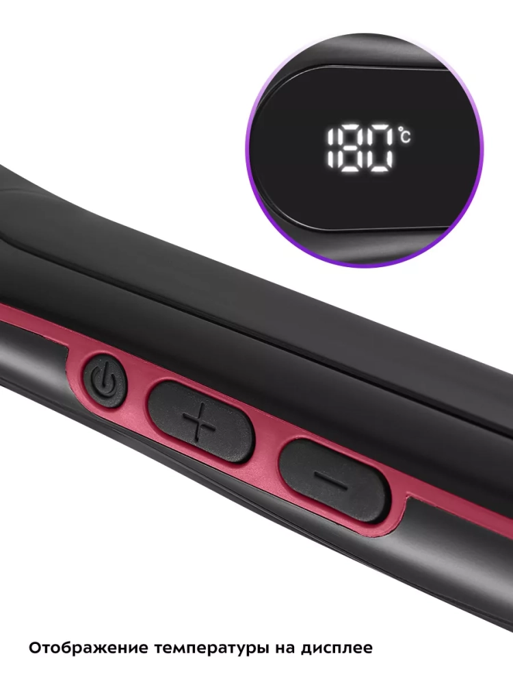 Вы можете установить температуру нагрева расчески-выпрямителя от 80 до 230 °С с шагом 10 °С. Температура нагрева отображается на дисплее.