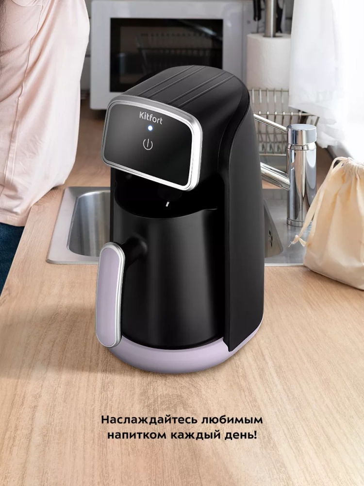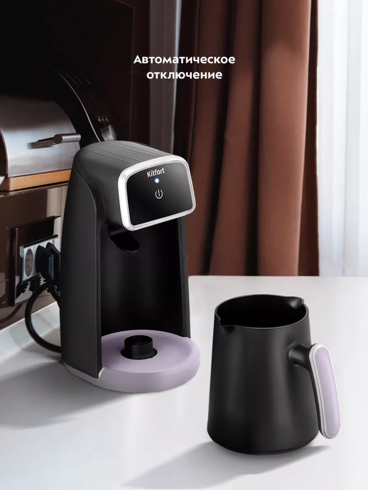 Электрическая турка Kitfort КТ-7454 варит кофе по-турецки. С ней вы сможете быстро и легко сварить натуральный кофе на 4 чашки по 60 мл.