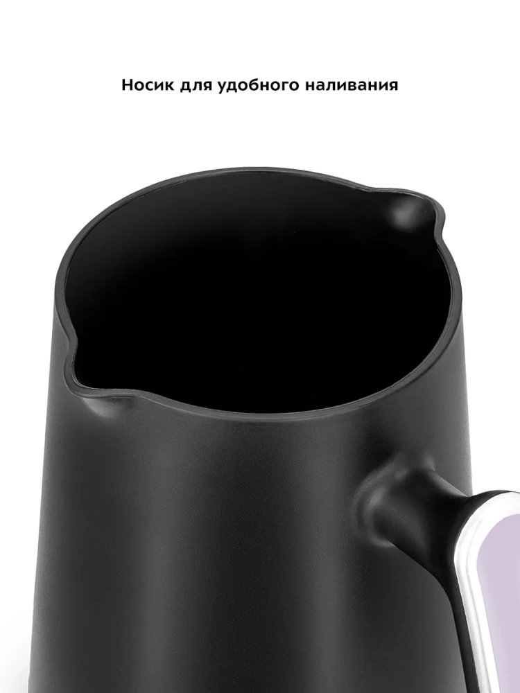 Ручка турки пластиковая, не нагревается и удобно лежит в руке. У турки 2 носика, это сделано специально, чтобы вам было удобно наливать кофе в чашку вне зависимости от того, правша вы или левша.