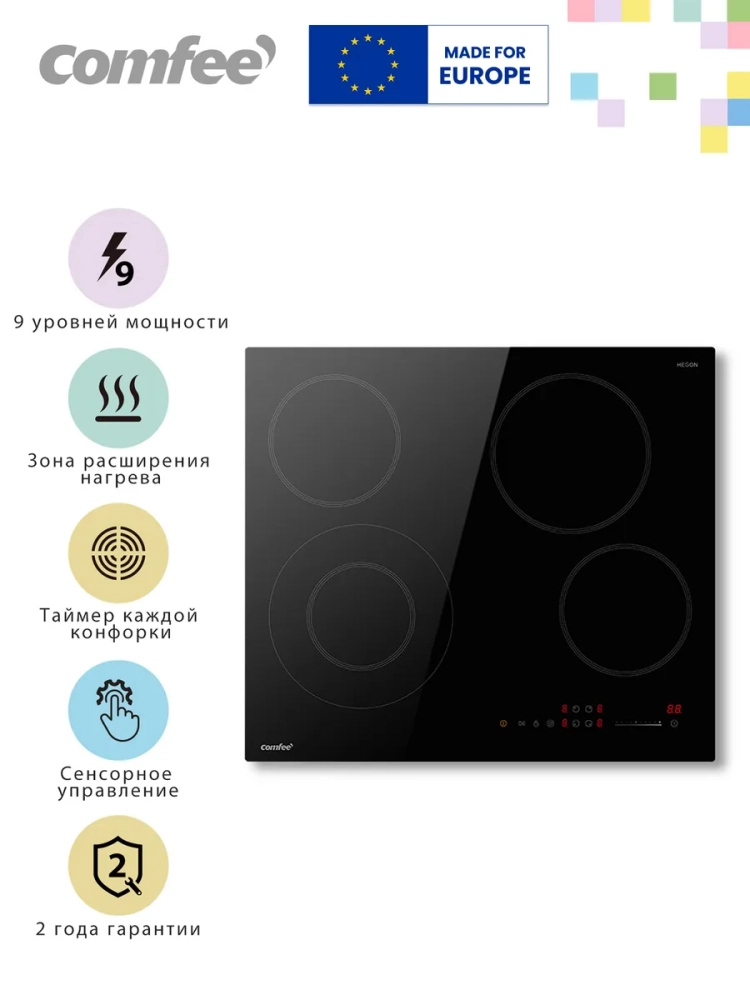Встраиваемая электрическая варочная панель Comfee CEH611 - это надежный и функциональный выбор для вашей кухни, который сочетает в себе стиль, удобство использования и безопасность.