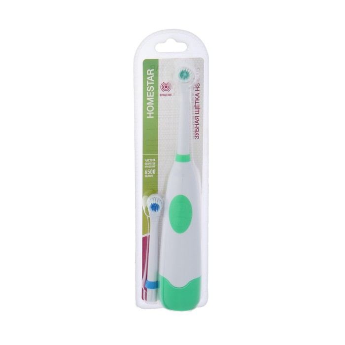 Электрическая зубная щетка HOMESTAR HS-6005, вращательная, 6500 об/мин, 2 насадки, зеленая
