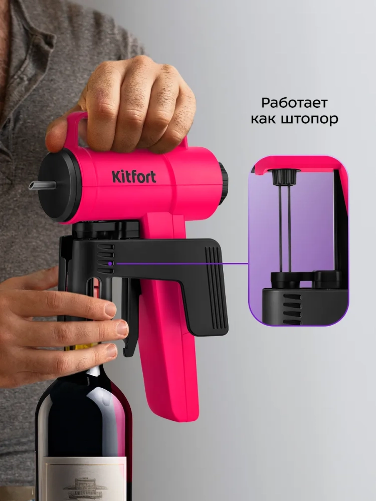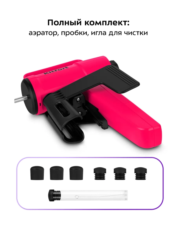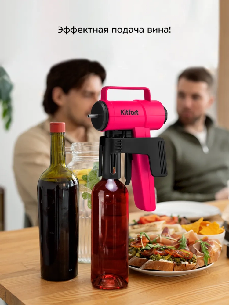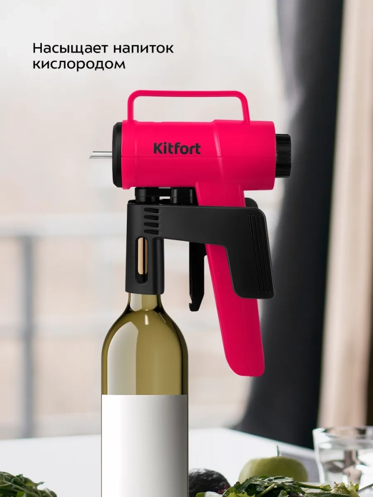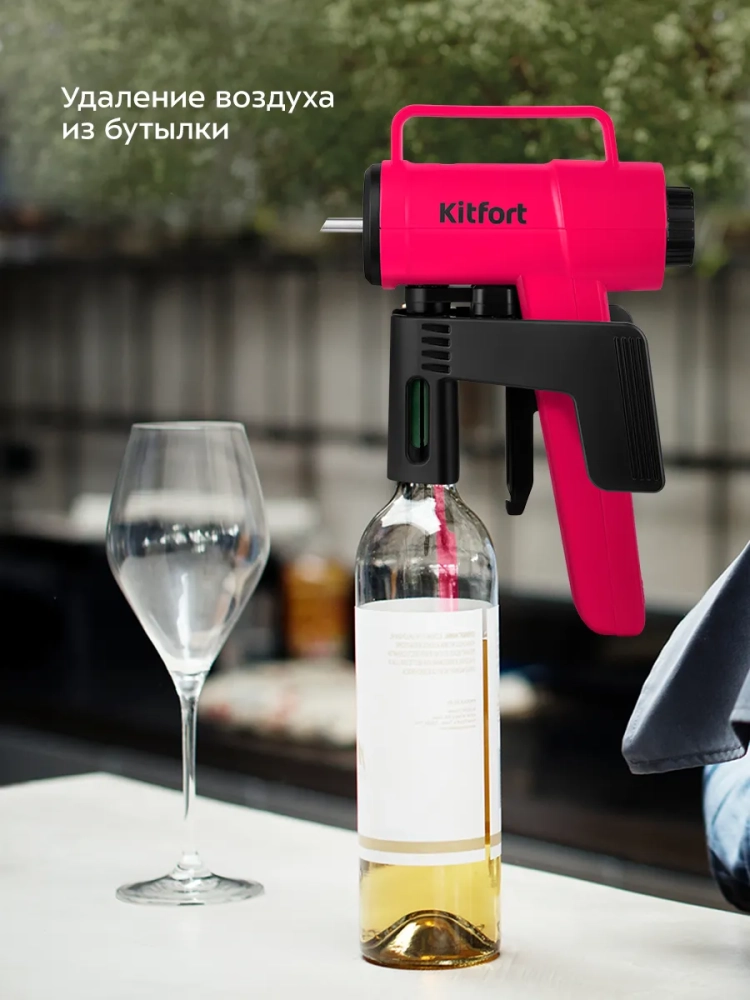 Аэратор для вина «3 в 1» Kitfort КТ-6441 поможет легко и удобно налить вино в бокал и насытить напиток кислородом. Насыщение кислородом раскрывает вкус и аромат напитка. Сомелье советуют аэрировать многие сорта вин, однако некоторым сортам аэрация может навредить и испортить вкус. Вы можете ориентироваться на свои вкусовые предпочтения или более подробно изучить рекомендации сомелье в интернете. Отличие данного аэратора от других заключается в том, что он устанавливается на закрытую бутылку.