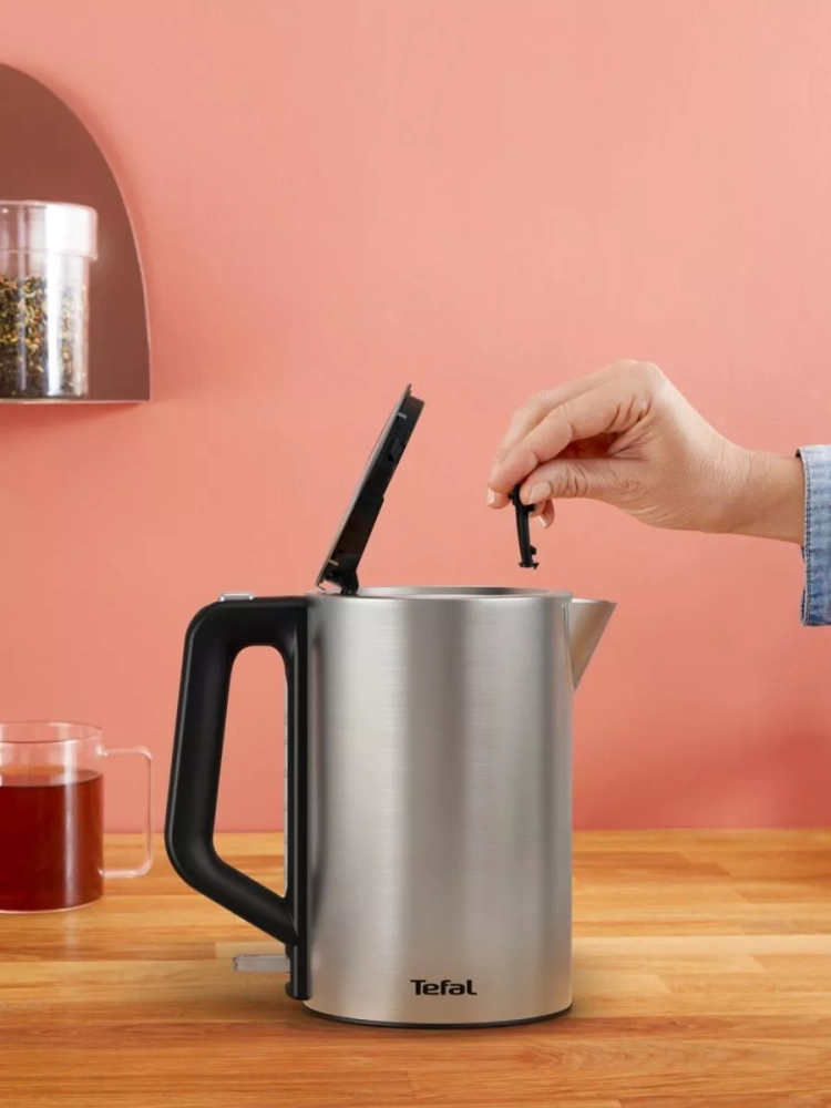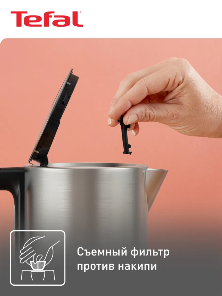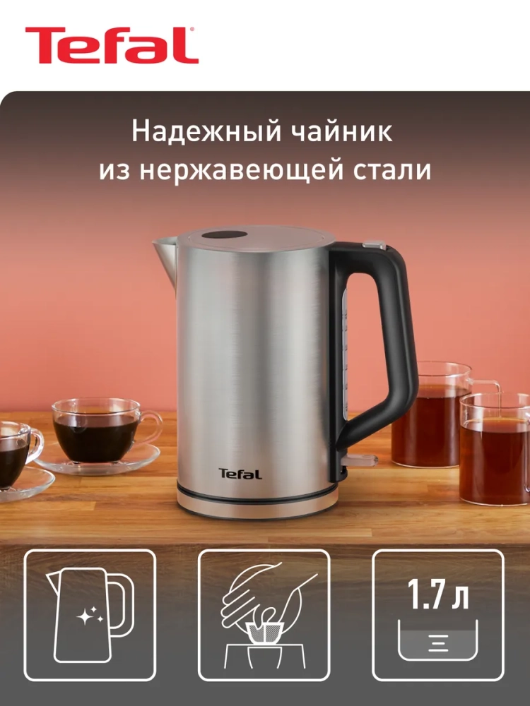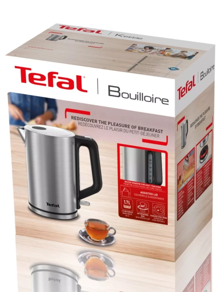 Электрический чайник Tefal Bronx KI513D10. Стильный и надежный чайник из нержавеющей стали. Электрический чайник Tefal Bronx радует доведенной до совершенства функциональностью и элегантным стилем. Он привлекает не только дизайном: чайник имеет оптимальный объем 1.7 л, съемный фильтр от накипи, переключатель вкл/ выкл со световой индикацией, автоотключение и поворотное на 360 градусов основание. Все это делает прибор удобным и приятным в использовании.